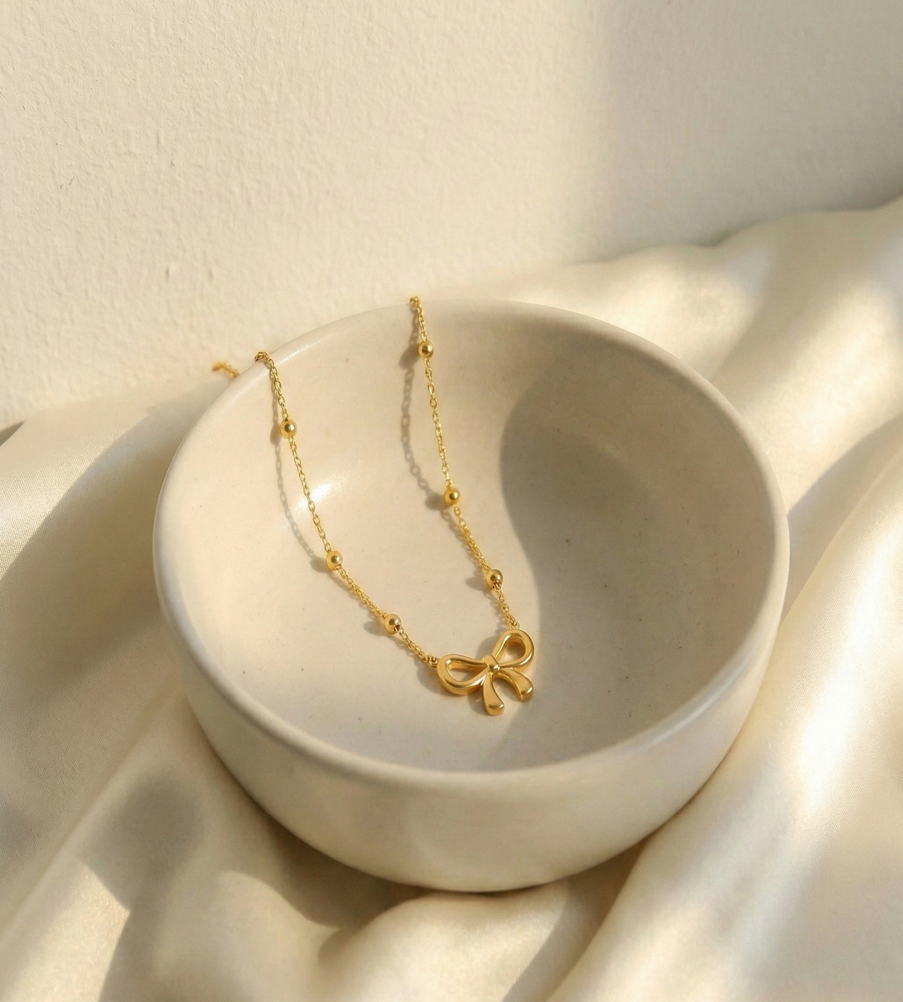 Beaded Bow Charm Necklace